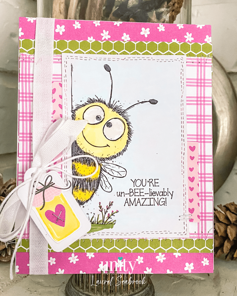 We have had some pretty gorgeous winter days, sunny and cool, and it got me in a Spring mood. I couldn’t wait to ink up this cute Bee stamp called Peek-A-Bee from Unity.