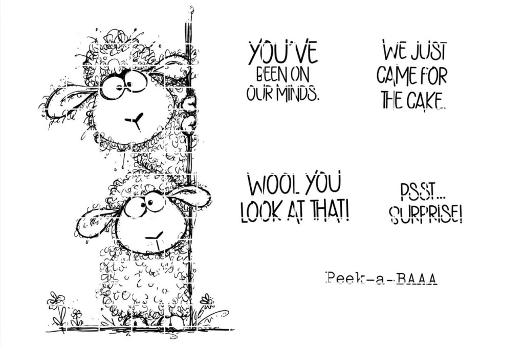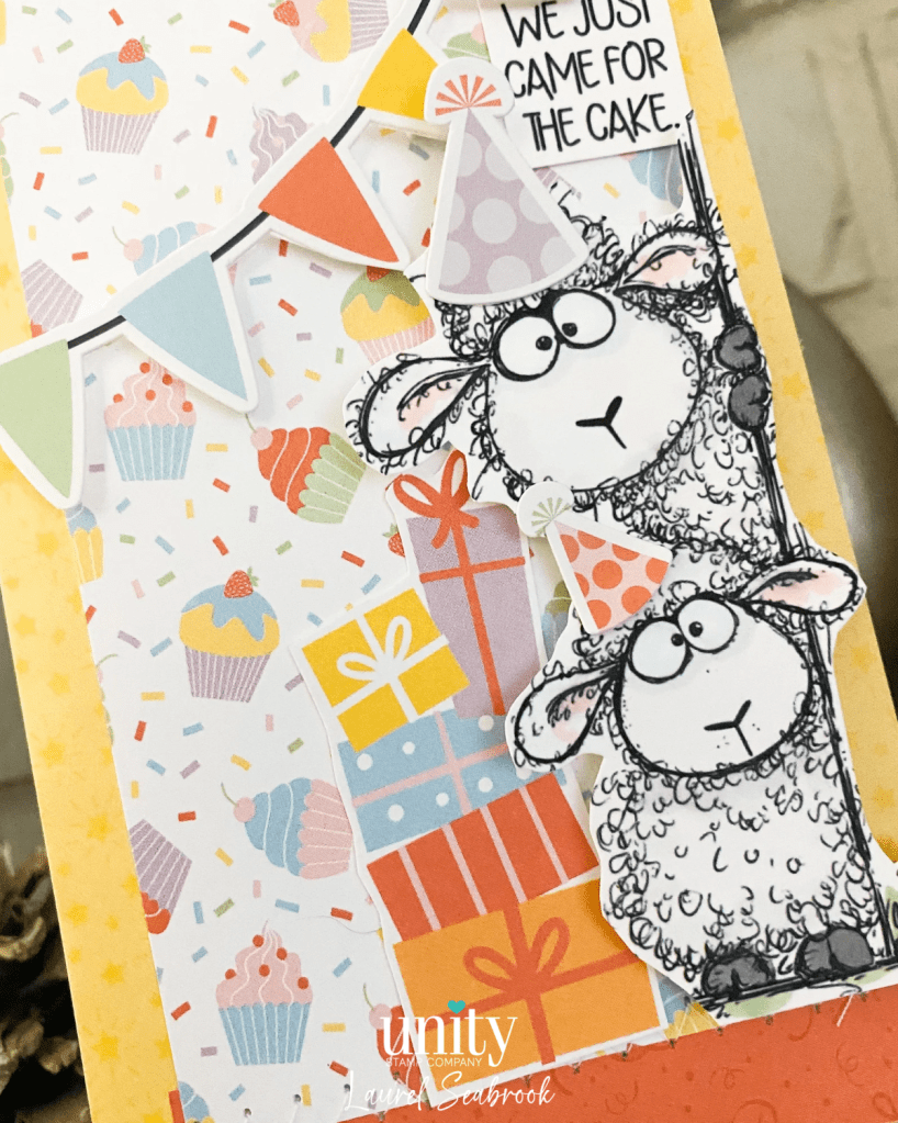 I did minimal colouring.. The party hats are actually stickers. I stuck to scrap paper first then cut out so that I could make sure when the sheep were mounted on foam squares the hats weren’t sticking to the background.