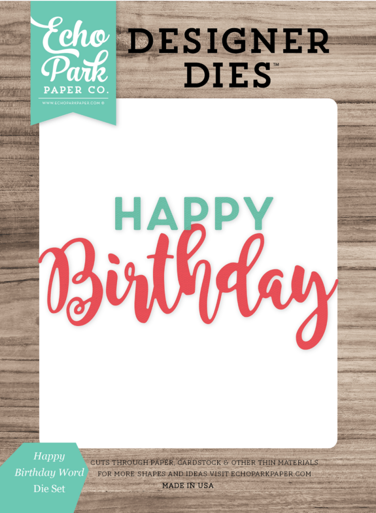 The Cake stamp and die is from CTMH one and I paired it with a notebook stamp and die from Stampin Up. I paper pieced the cake and mounted it on foam squares. I then topped it with the birthday die from Echo Park. This was one of those 11th hour type of cards and luckily for me, it all went together well.