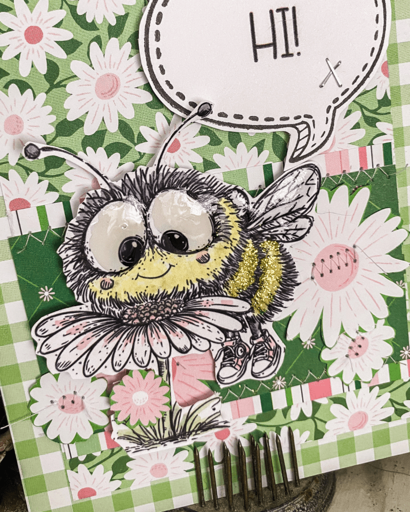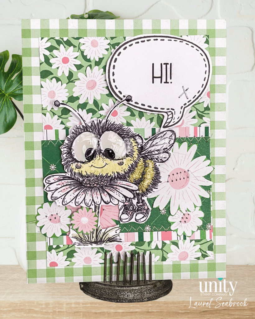 I made this card awhile ago and forgot to share it. It is a newer stamp from Unity called Hip Hop Honeybee. I just love those big cute eyes and his sneakers!