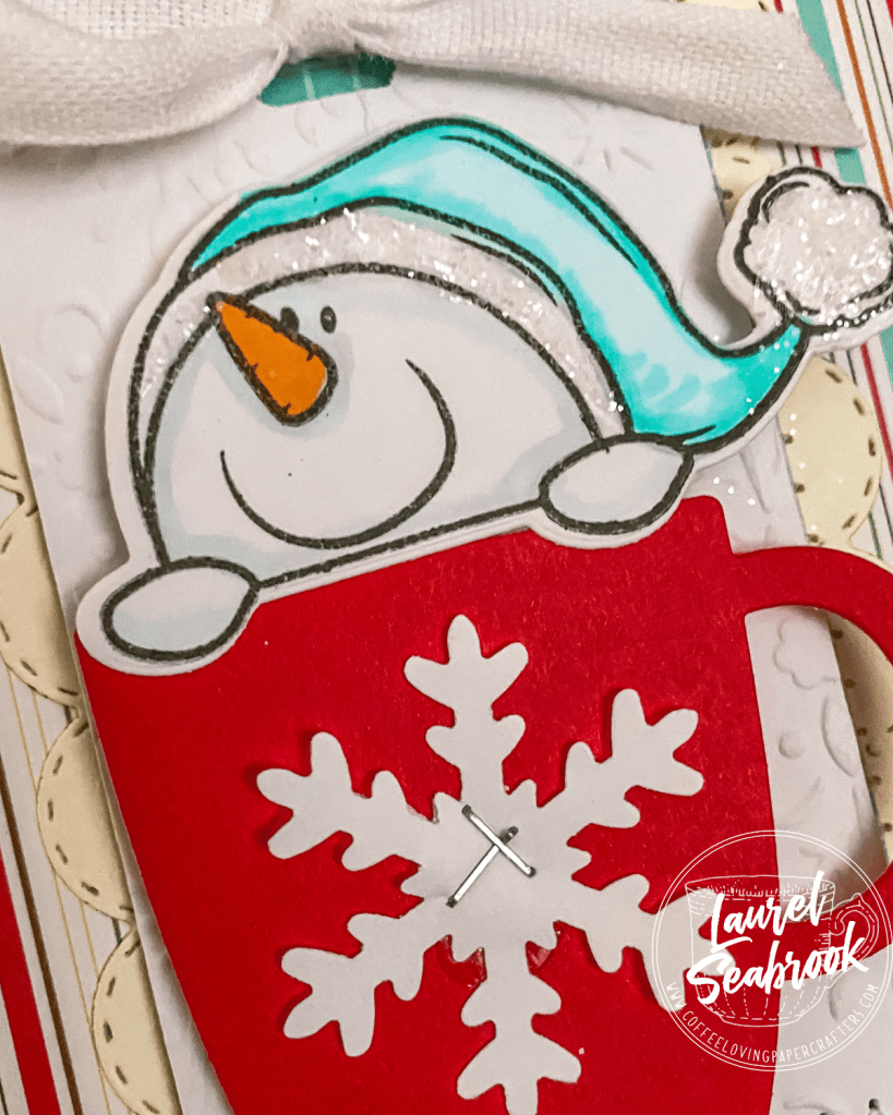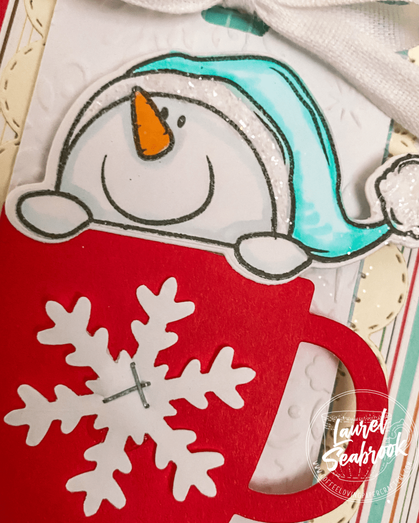 This is also another card for the Lattes & Layers challenge over on the Coffee Loving Paper Crafters Blog where the theme is Sparkle. I added some sparkle to the snowman’s hat.