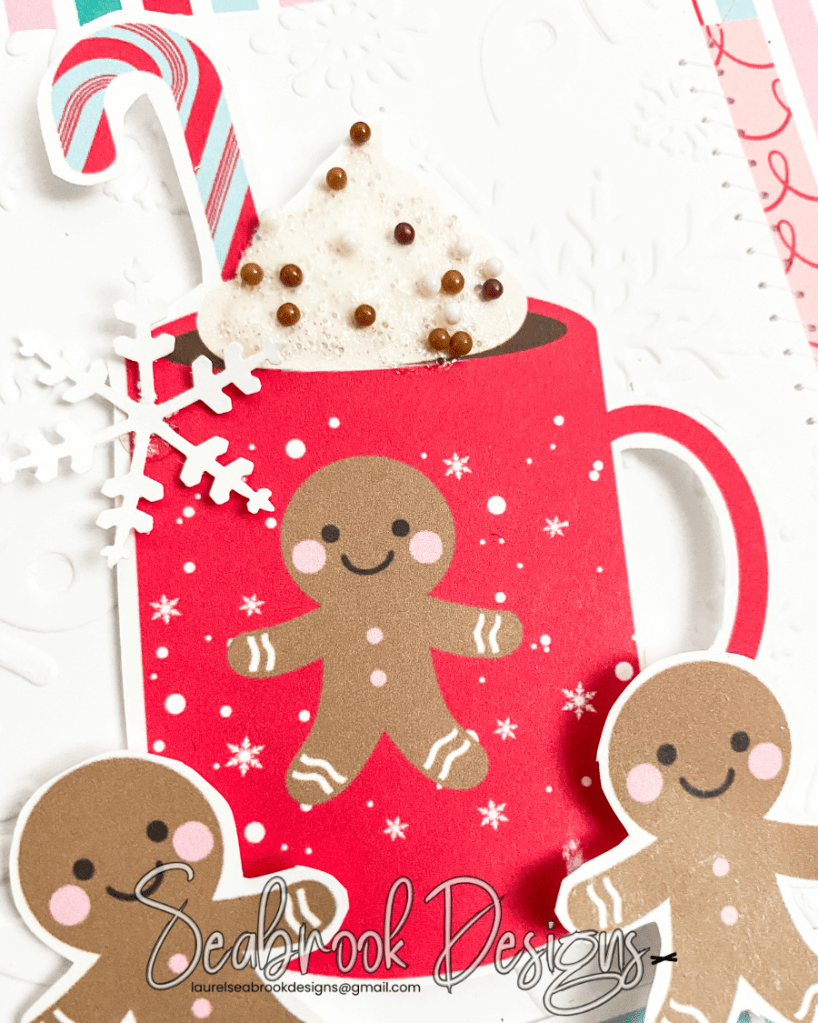 I embossed the white panel with my sweater knit embossing folder. The sending die is from CTMH and the Warm Wishes stamp set is from the CZ Design Clear Stamps Warmest Wishes stamp set from Simon Says Stamp – love this set!