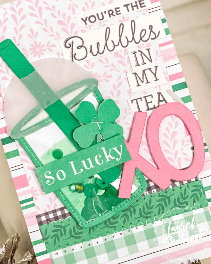 Here’s my take on Green, using some old CTMH papers – it has such a springy vibe don’t you think. I have paired it with the Bubble Tea die from Lawn Fawn in which I made a shaker. The sentiment is from MFT and the XO is another Lawn Fawn die.